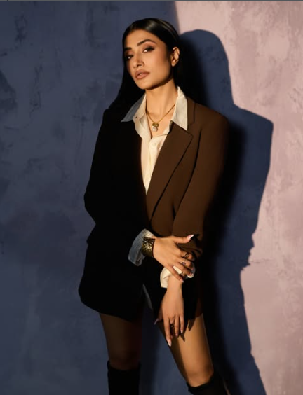 सोशल मीडिया पर बेहद एक्टिव रहने वाली डांसर और एक्ट्रेस धनश्री वर्मा (Dhanashree Verma) ने कुछ लेटेस्ट तस्वीरें अपने इंस्टाग्राम अकाउंट पर शेयर की हैं। इन तस्वीरों में उनका बेहद हटके अंदाज देखने को मिला है। वो ब्लेजर पहन बॉस लेडी अवतार में पोज देती दिखी हैं। धनश्री ऑफ व्हाइट शर्ट के साथ ओवर साइज्ड ब्राउन ब्लेजर पहने नजर आई हैं। उन्होंने साथ में लॉन्ग बूट्स पहने हैं। वो हैवी मेकअप, आई शौडो और ब्राउन लिपस्टिक लगाने के साथ खुले बालों में नजर आईं। धनश्री ने साथ में मिनिमल ज्वैलिरी पहनी है। धनश्री ने अपने इस फोटोशूट में एक से बढ़कर एक पोज दिए हैं। फैन्स और सेलेब्स को धनश्री का ये ग्लैमरस लुक काफी पसंद आ रहा है। देखें धनश्री की खूबसूरत तस्वीरें।