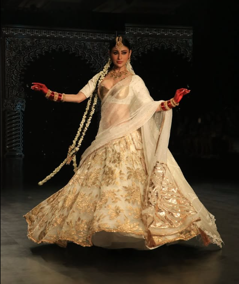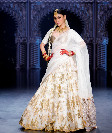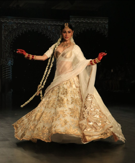 Mouni Roy ने एक बार फिर फैन्स का दिल जीत लिया है। उन्होंने रैंप वॉक के दौरान हाथों में आल्ता और बालों में गजरा लगाकर पूरी महफिल ही लूट ली।