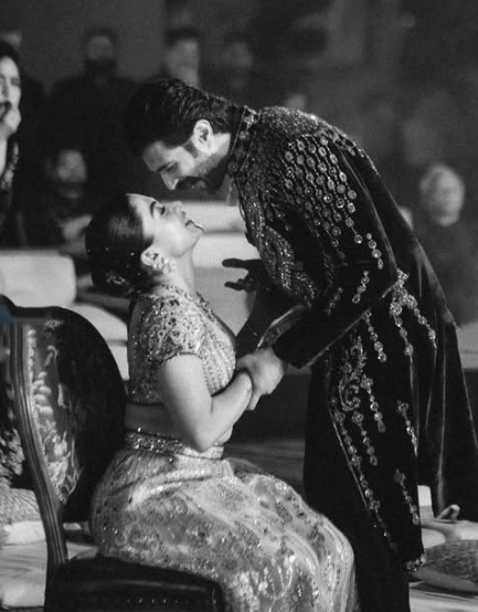 न्यूली वेड्स रश्मिका मंदाना (Rashmika Mandanna) और विजय देवरकोंडा (Vijay Deverakonda) की जोड़ी लगातार चर्चा में बनी हुई है। 26 फरवरी को एक-दूसरे से शादी करने के बाद ये जोड़ी 4 मार्च को हैदराबाद में शादी का रिसेप्शन देने जा रही है। वहीं रिसेप्शन से ठीक पहले कपल ने अपनी शादी की संगीत पार्टी की तस्वीरों को फैन्स के साथ साझा किया है। रश्मिका और विजय ने अपने-अपने इंस्टाग्राम अकाउंट पर फोटो शेयर करते हुए बताया कि रिशेप्शन में सबने जमकर इंज्वॉय किया और सब तक हंसे जब तक आंखों से आंसू नहीं निकले। रश्मिका और विजय की जोड़ी इस इवेंट में फेमस डिजाइनर शेन और पिकॉक द्वारा डिजाइन आउटफिट पहने नजर आए थे। सामने आई तस्वीरों में दोनों अपने परिवार और करीबी दोस्तों के बीच जमकर इंज्वॉय करते दिखे थे।